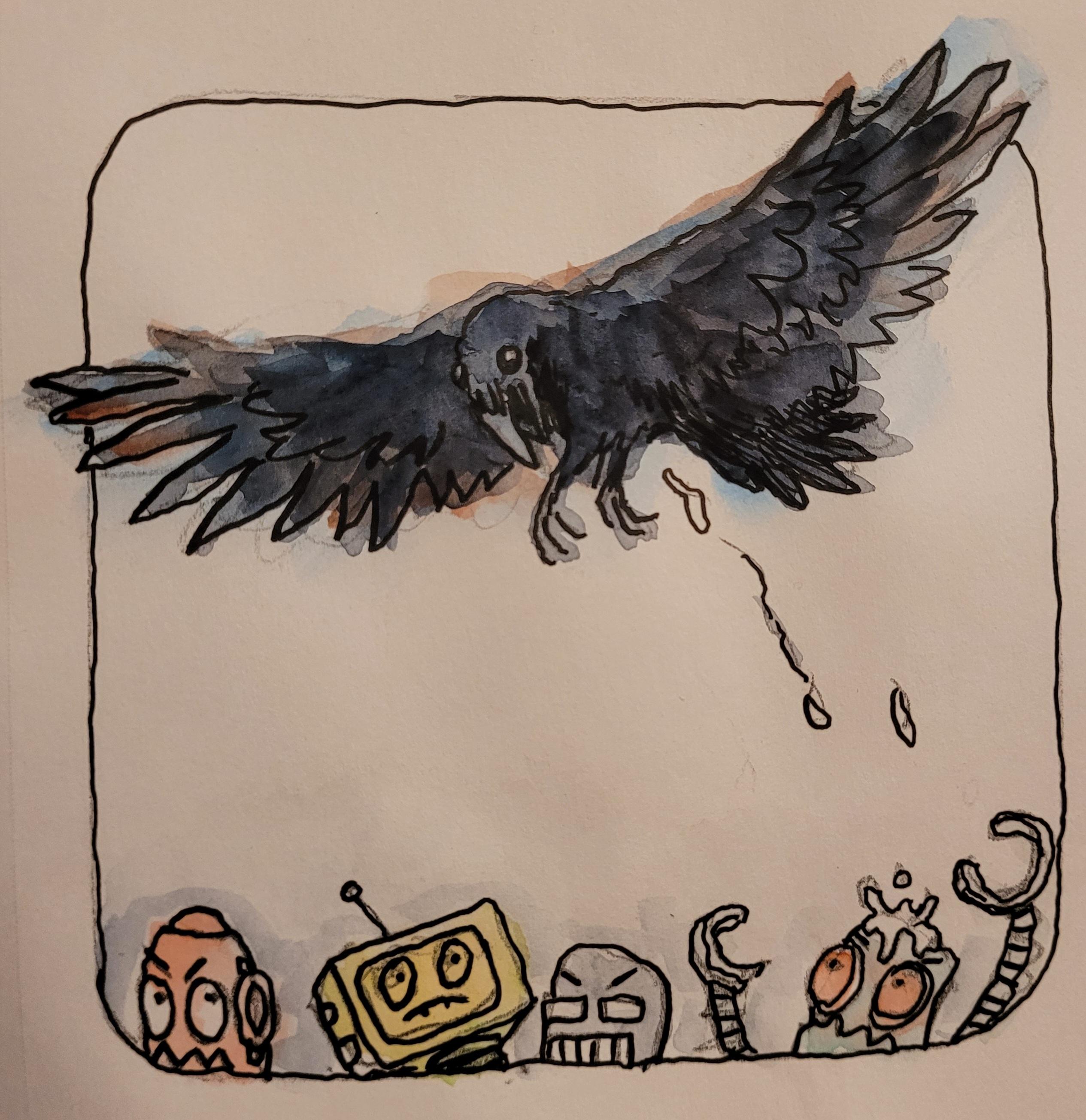 Crowvember offering 12: "The crow, being a tool user, knows how to fix his cassette."