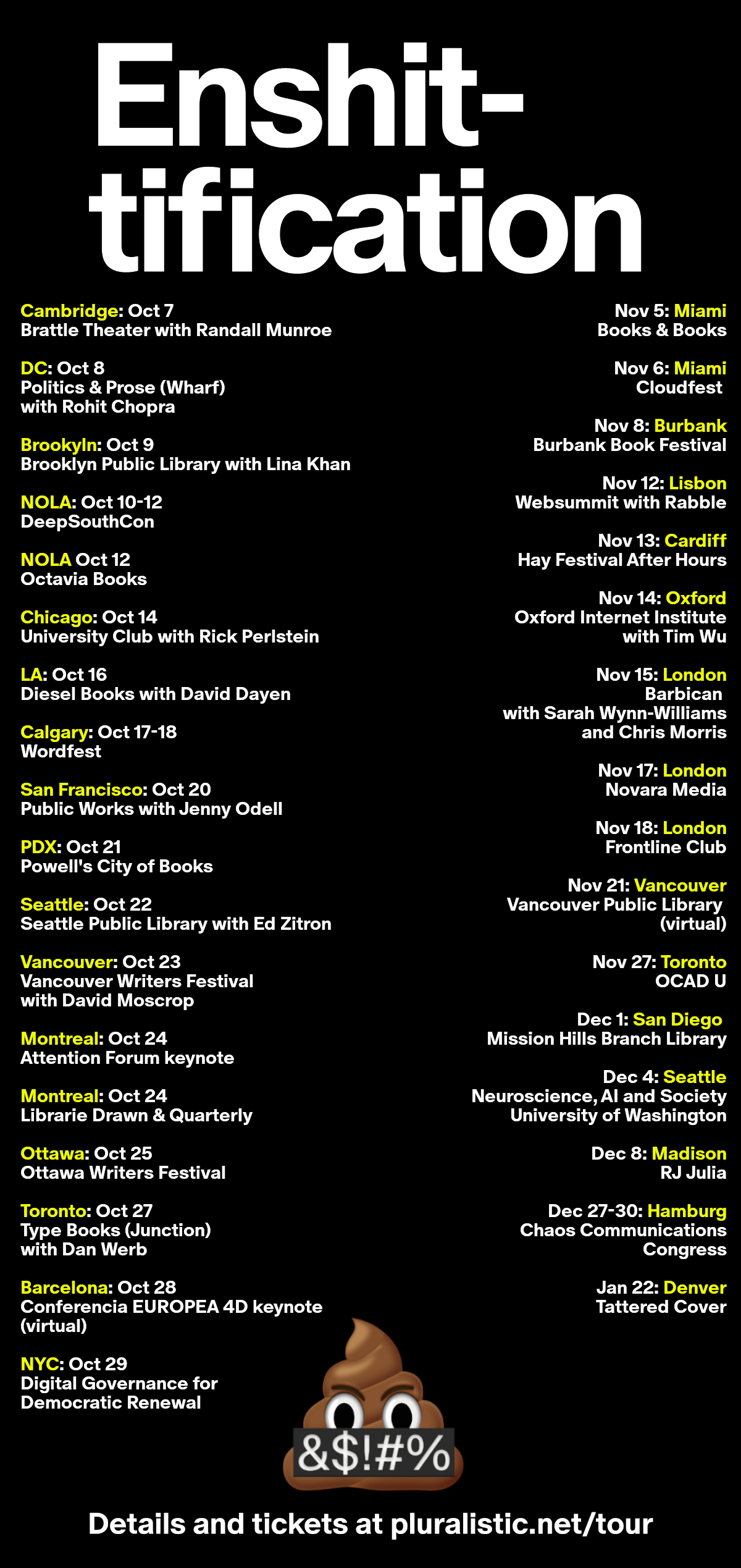 I'm on a tour with my new book, the international bestseller *Enshittification*!